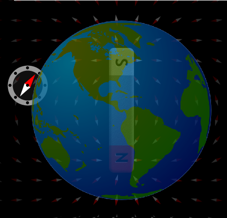 De Aarde is te vergelijken met een grote magneet. Bron: PhET simulations.
