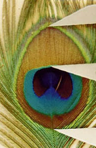 De Gulden Snede bij een pauwenveer, bron:http://www.goldenmeangauge.co.uk/