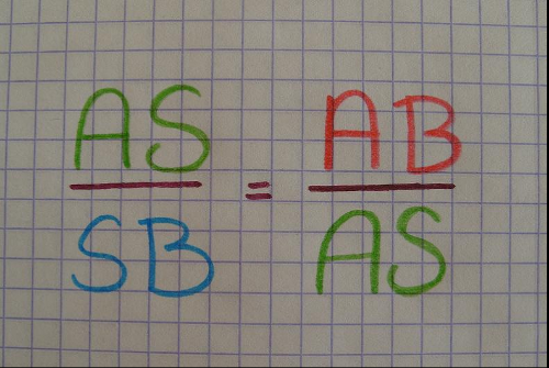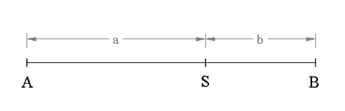 Euclides was een Griekse wiskundige uit de oudheid. Hij leefde rond 300 voor Christus. Hij hield zich bezig met wiskundige ontdekkingen. Zo bedacht Euclides hoe je een lijnstuk moet verdelen om de gulden snede te krijgen.Hieronder zie je een plaatje van een lijnstuk AB. Punt S is waar de gulden snede van dit lijnstuk zit