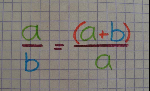Als je een lijnstuk neemt (de lengte maakt niet uit!) en je verdeelt dat volgens de gulden snede, en zet er dezelfde letters bij als bij het voorbeeld, dan zal er altijd hetzelfde getal uitkomen als je a/b doet. Dit gedal heet het gulden getal, ook wel aangeduid met de griekse letter phi. De waarde van phi is ongeveer 1,618