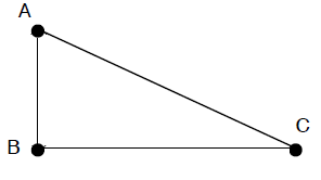 Dit is een Eulergraaf omdat we een route kunnen maken met alle lijnen en punten uit de graaf. De route wordt dan bijvoorbeeld: van punt A naar punt B, van punt B naar punt C en van punt C naar punt A.We zien dat we dus gebruik hebben gemaakt van alle lijnen en alle punten in de graaf.