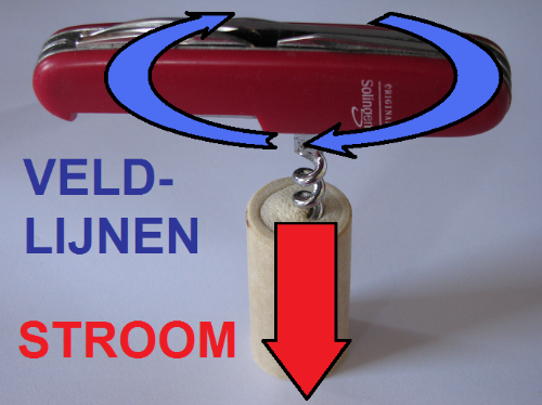 Om dit makkelijk voor je te zien, is er de kurkentrekkerregel (zie fig. 2). Als een kurkentrekker de richting van de stroom voorstelt, dan is de richting waarin je de kurkentrekker moet draaien om hem de kurk in te krijgen, de richting waarin de veldlijnen wijzen.