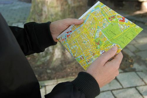 Met een kaart in de hand, ..... Foto: Marieke de Boer