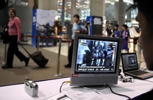 Mensen die net met het vliegtuig aankomen worden gescand om verspreiding van de Mexicaanse griep te voorkomen, bron: wikipedia.