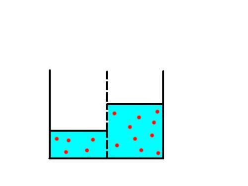 Neem twee vloeistoffen met verschillende concentraties opgeloste stoffen. Voorbeeld: een deciliter water met 5 g zout erin opgelost (oplossing 1) en een deciliter water met 10 g zout (oplossing 2). Deze twee oplossingen gieten we in een bak met een scheidingswand in het midden. Links gieten we oplossing 1, rechts oplossing 2.