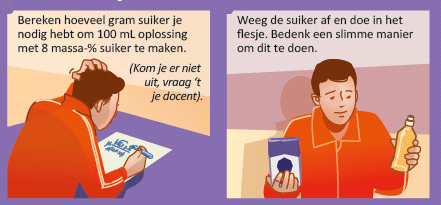 - Bereken hoeveel suiker je moet toevoegen om 8% koolhydraten in 100 ml water te krijgen..