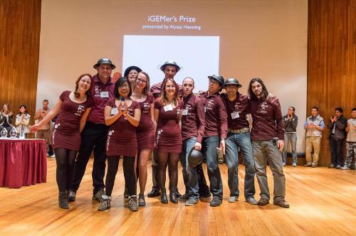De studenten wonnen met hun uitvinding een internationale wedstrijd op het gebied van genetische modificatie. Foto: Justin Knight, iGEM foundation.