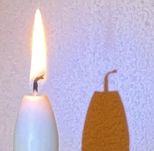 d) Maak op dezelfde manier een foto van de brandende kaars en zijn schaduw.