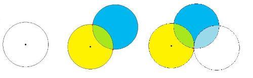 Als je er nu een tweede satelliet bij zou hebben dan zou je alweer wat extra informatie hebben met betrekking tot je positie. In de middelste afbeelding van de figuur maak je nu gebruik van twee satellieten. Door de gegevens te combineren krijg je twee snijpunten aangegeven met de rode stippen. Helemaal rechts in de figuur is te zien dat er door toevoeging van de gegevens van de derde satelliet nog maar één mogelijke positie over is. Deze is aangegeven met de rode stip en bevindt zich dus op het snijpunt van de drie cirkels.