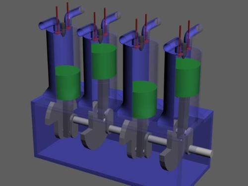 Figuur 2: Meerdere cilinders achter elkaar: een viercilinder viertaktmotor