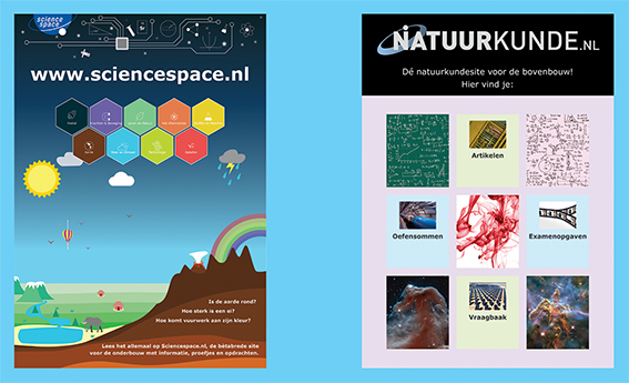 We hebben voor Natuurkunde.nl en Sciencespace.nl posters (A2-formaat) gemaakt die u kunt ophangen in uw klaslokaal. Bestellen? Stuur een email naar bureau@nnv.nl. De posters worden tegen verzendkosten opgestuurd.